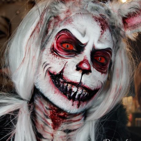 ・ステージブラッドを容器(紙コップ等)に出し、綿棒やスポンジ、使い捨てのアイライナーブラシやグロスブラシで血の演出箇所に塗ります。※血糊は乾くと、洗っても落ちにくいため使い捨ての道具で血糊を塗ることをお勧めします。